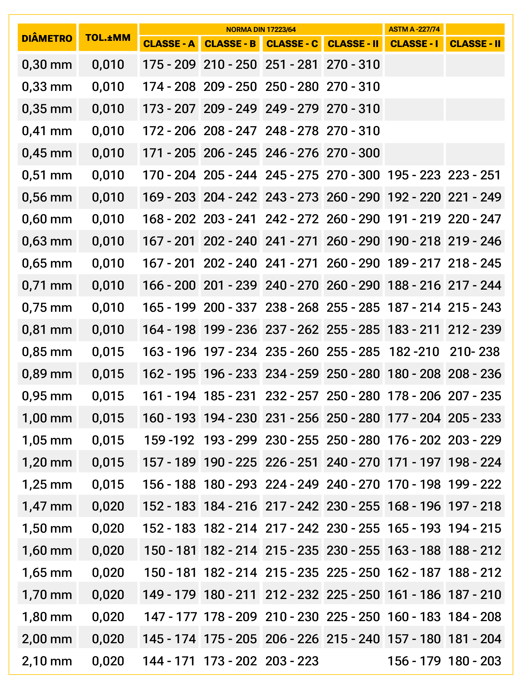 Tabela de resistência à tração (kfg/mm²) e tolerâncias para aços ao carbono