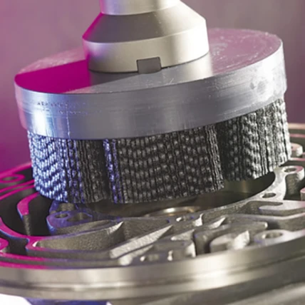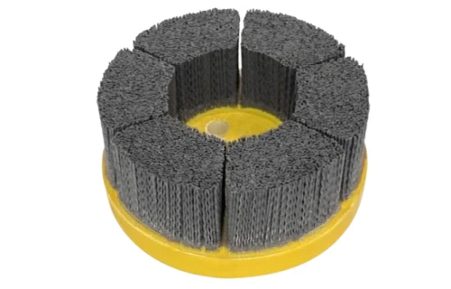 O material é conhecido por sua capacidade de se adaptar aos contornos das superfícies, proporcionando uma ação de corte uniforme e consistente em aplicações como rebarbação, polimento e remoção de revestimentos.